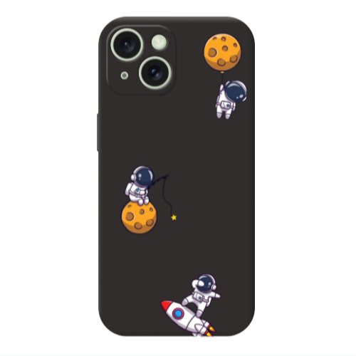 Θήκη Apple iPhone 15 Cute astronauts Black Colored Silicone TPU