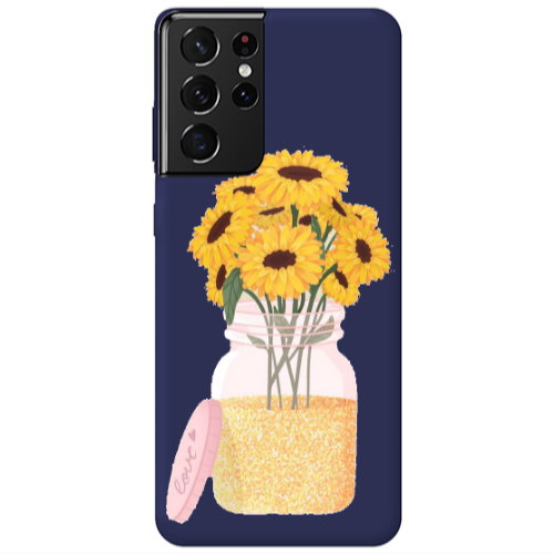 Θήκη Samsung S21 Ultra Daisies Dark blue Colored Silicone TPU