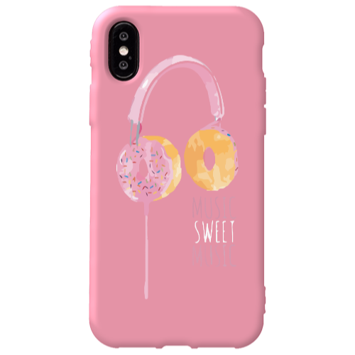 Θήκη Apple iPhone Xs Donut earphone Pink Colored Silicone TPU