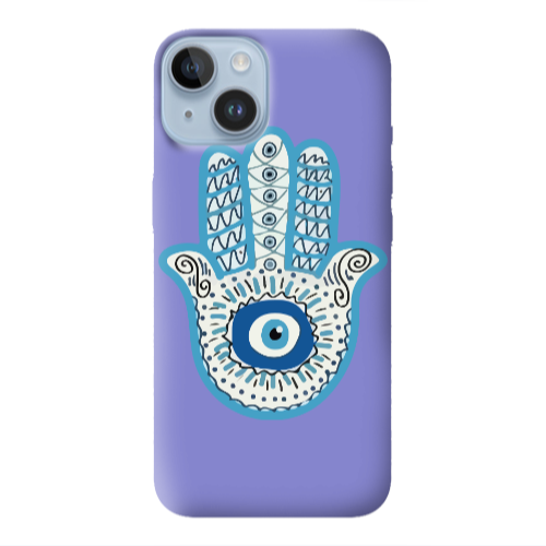 Θήκη Apple iPhone 14 Evil eye bead in hand Purple Colored Silicone TPU