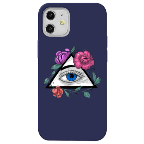 Θήκη Apple iPhone 12 Eye and flower Dark blue Colored Silicone TPU