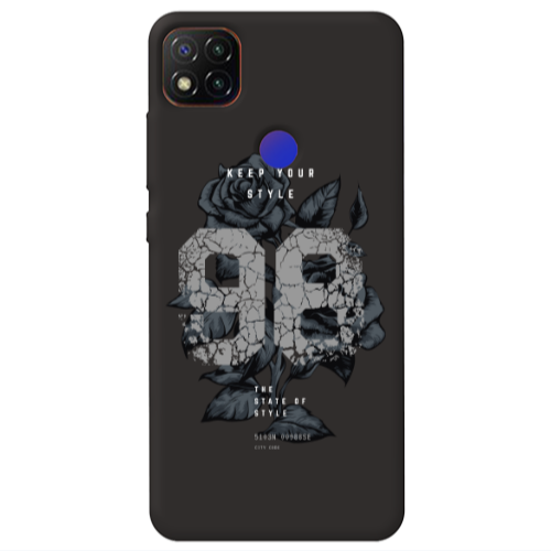 Θήκη Xiaomi Redmi 9c Flower 98 Black Colored Silicone TPU