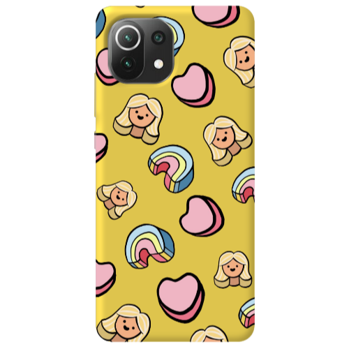 Θήκη Xiaomi Mi 11 Lite Girl rainbow and hearts Yellow Colored Silicone TPU