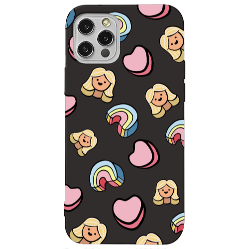 Θήκη Apple iPhone 12 Pro Max Girl rainbow and hearts Black Colored Silicone TPU