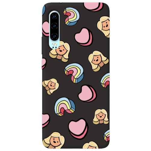 Θήκη Huawei P30 Girl rainbow and hearts Black Colored Silicone TPU