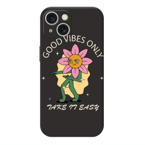 Θήκη Apple iPhone 15 Good Vibes Only Black Colored Silicone TPU