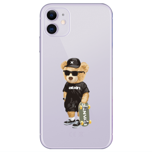 Θήκη Apple iPhone 11 Bear with glasses Pink Colored Silicone TPU