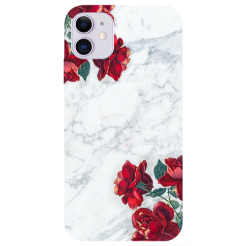 Θήκη Apple iPhone 11 Marble and roses Dark blue Colored Silicone TPU
