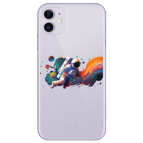 Θήκη Apple iPhone 11 Astronaut flies a plane Black Colored Silicone TPU