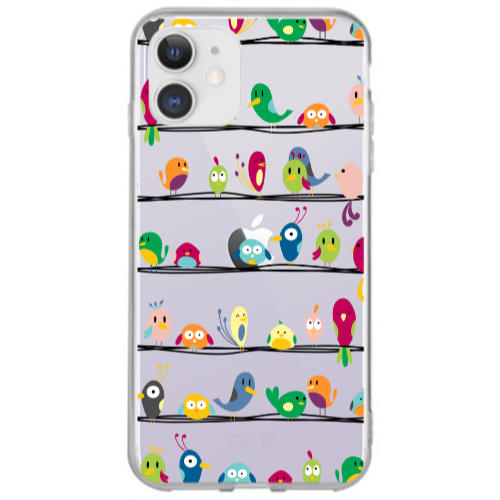 Θήκη Apple iPhone 12 birds Black Colored Silicone TPU