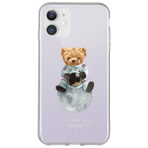 Θήκη Apple iPhone 12 Bear in space Black Colored Silicone TPU