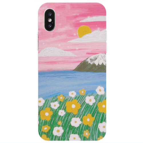 Θήκη Apple iPhone X Sun and Flowers Pink Colored Silicone TPU