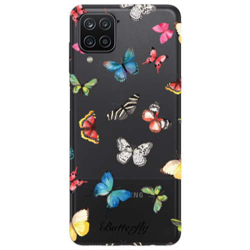 Θήκη Samsung A12 Butterfly Mix Fuchsia Colored Silicone TPU