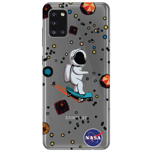 Θήκη Samsung A31 Astronaut with skateboard Black Colored Silicone TPU