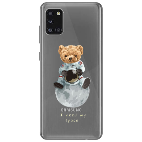 Θήκη Samsung A31 Bear in space Pink Colored Silicone TPU