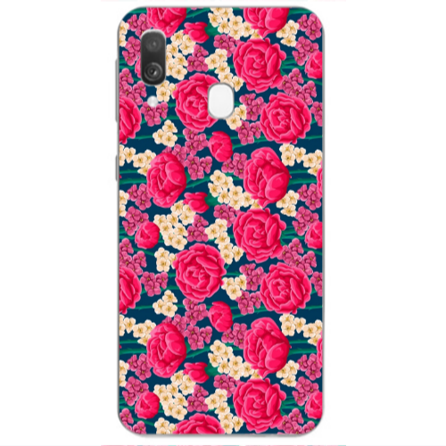 Θήκη Samsung A40 Red and pink Flowers Transparent Silicone TPU