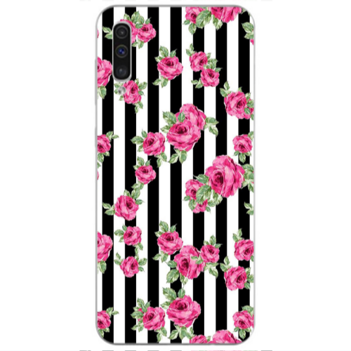 Θήκη Samsung A50 Roses and black line Black Colored Silicone TPU
