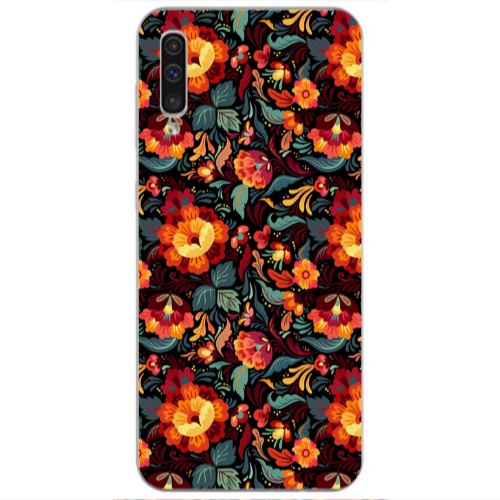 Θήκη Samsung A50 Orange flowers Pink Colored Silicone TPU