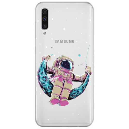 Θήκη Samsung A70 Astronaut swinging on the moon Blue Colored Silicone TPU