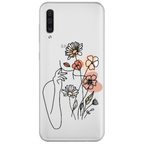 Θήκη Samsung A70 Lady with Flowers Transparent Silicone TPU