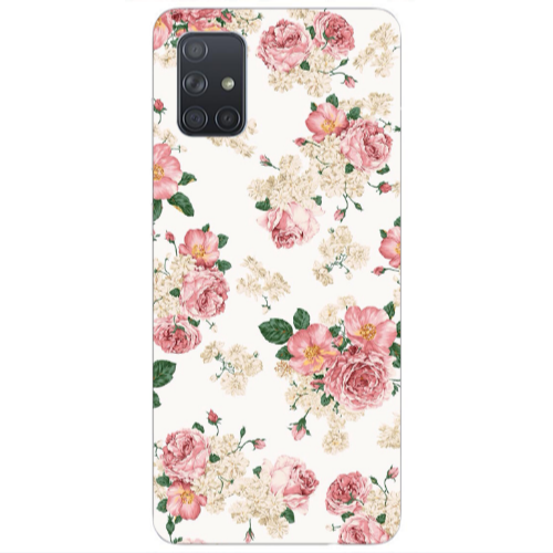 Θήκη Samsung A71 Pink Flowers 2 Dark blue Colored Silicone TPU