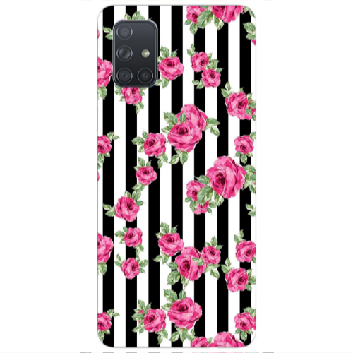 Θήκη Samsung A71 Roses and black line Dark blue Colored Silicone TPU
