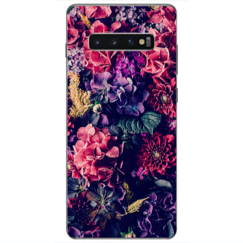 Θήκη Samsung S10 E Purple and pink flowers Transparent Silicone TPU