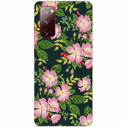 Θήκη Samsung S20 FE Pink flowers green laves Red Colored Silicone TPU