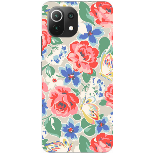 Θήκη Xiaomi Mi 11 Lite Pink Roses Light Purple Colored Silicone TPU