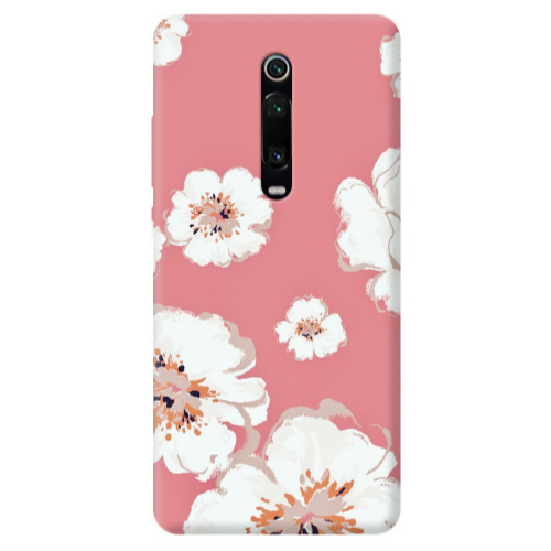 Θήκη Xiaomi Mi 9T Pro White Flowers Black Colored Silicone TPU