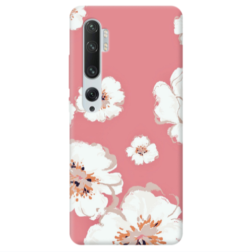 Θήκη Xiaomi Mi Note 10 White Flowers Black Colored Silicone TPU