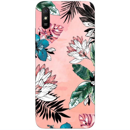 Θήκη Xiaomi Redmi 9A Tropical flowers Transparent Silicone TPU