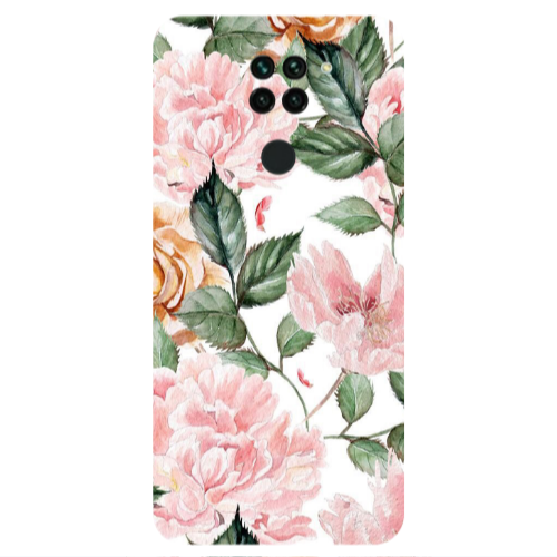 Θήκη Xiaomi Redmi Note 9 Pink rose and laves Turquoise Colored Silicone TPU