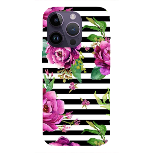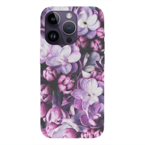 Θήκη Apple iPhone 14 Pro Max Purple Flowers Black Colored Silicone TPU