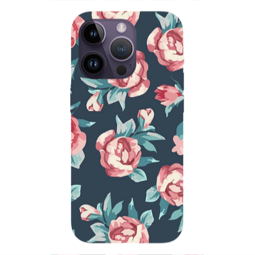 Θήκη Apple iPhone 14 Pro Max Purple Flowers Pink Colored Silicone TPU