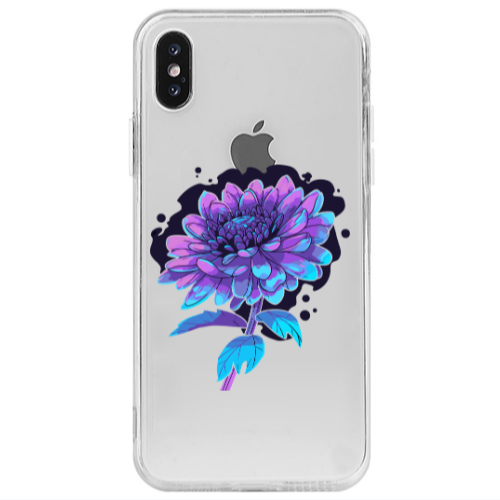 Θήκη Apple iPhone Xs Violet and rose Transparent Silicone TPU
