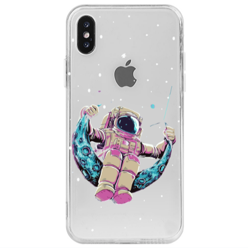 Θήκη Apple iPhone Xs Astronaut swinging on the moon Pink Colored Silicone TPU