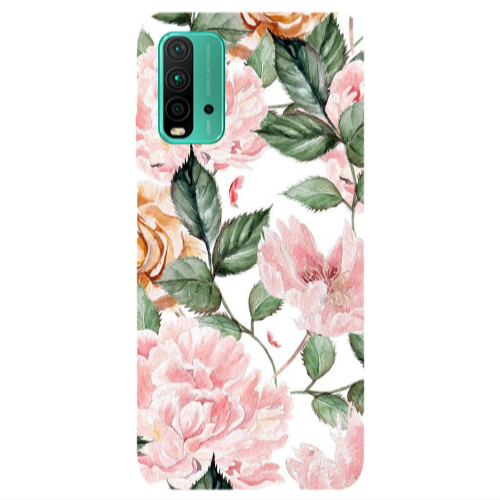 Θήκη Xiaomi Redmi 9T Pink rose and laves Black Glossy