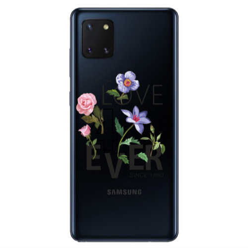 Θήκη Samsung Note 10 Lite Purple Flowers Black Colored Silicone TPU
