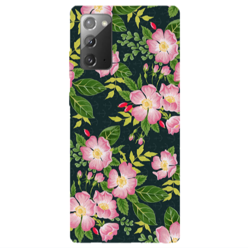 Θήκη Samsung Note 20 Pink flowers green laves Transparent Silicone TPU