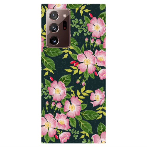 Θήκη Samsung Note 20 Plus Pink flowers green laves Transparent Silicone TPU