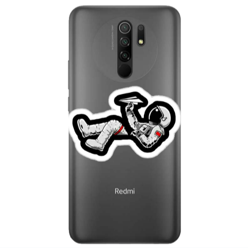 Θήκη Xiaomi Redmi 9 Astronaut flies a plane Black Colored Silicone TPU