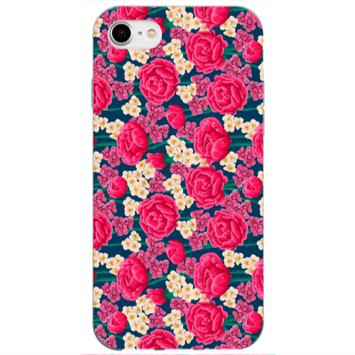 Θήκη Apple iPhone SE 2020 Red and pink Flowers Transparent Silicone TPU