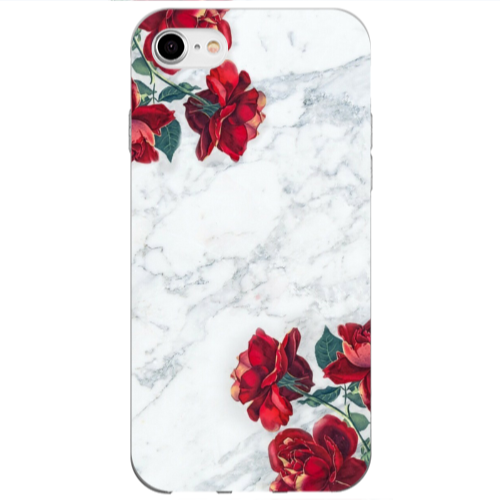 Θήκη Apple iPhone SE 2020 red roses marble Red Colored Silicone TPU