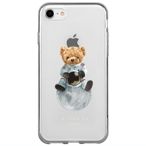 Θήκη Apple iPhone SE 2020 Bear in space Black Colored Silicone TPU