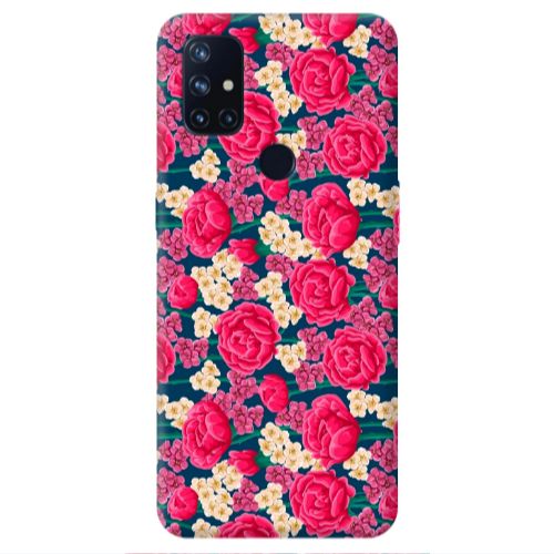 Θήκη Oneplus Nord 10 Red and pink Flowers Transparent Silicone TPU