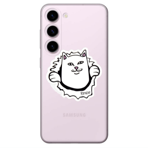 Θήκη Samsung S23 White cat Pink Colored Silicone TPU
