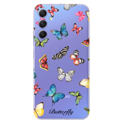 Θήκη Samsung A34 Mixed Butterflys Pink Colored Silicone TPU