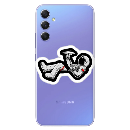 Θήκη Samsung A34 Astronaut flies a plane Transparent Silicone TPU