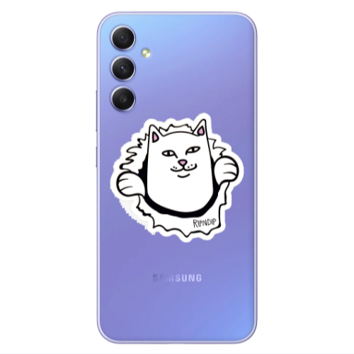 Θήκη Samsung A34 White cat Purple Colored Silicone TPU